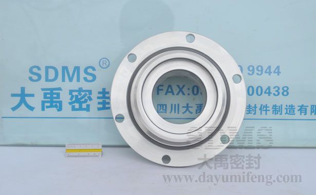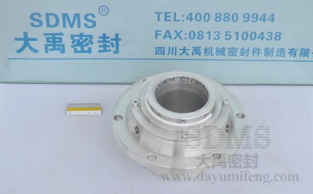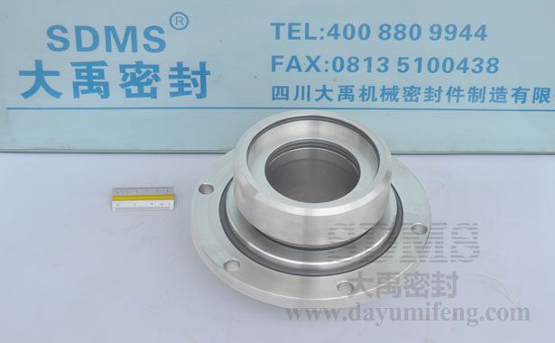 ? ? ? SDMS-80S機(jī)械密封只能用于含顆粒較少的場合,如某廠含砂重油泵,含砂量3%左右。顆粒太多時,容易在動 環(huán)密封圈處阻塞,使動環(huán)失去浮動性。該圖左面的端面與介質(zhì)接觸,設(shè)計成靜止內(nèi)流式,顆粒不易進(jìn)入摩擦副,動、靜環(huán)的密封圏也得到了保護(hù)。另外用沖洗液進(jìn)行沖洗,中間充封液進(jìn)行“封堵”,使顆粒破壞機(jī)械密封的可能性減到最小。