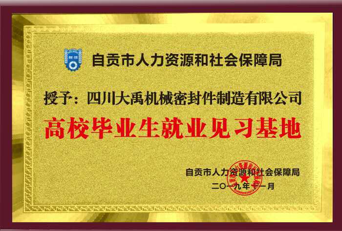 2019年11月,四川大禹機械密封件制造有限公司榮獲“自貢市高校畢業生就業見習基地”稱號。