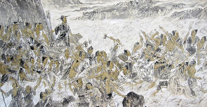 四千年前的上古之時,天降洪水,席卷大地,生靈涂炭。危急之時,一位英雄挺身而出,帶領天下民眾,經歷十三年的艱苦努力,終于治水成功,禍害人間的洪水被用于灌溉農田,人民安居樂業。人們將這位英雄尊稱為“大禹”。